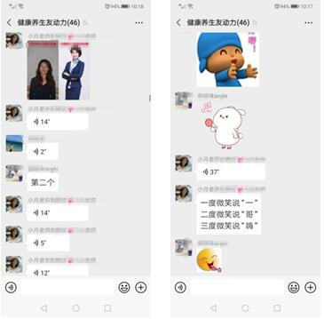 小月老师和我们分享了“形象是什么”、“形象的价值”、“男士仪容仪表”、“女士仪容仪表”“微笑的等级及锻炼方法”等知识。在男女士仪容仪表方面,大家听到较仔细,看来大家在生活上还是有意愿注重形象的。康复者在群里交流及提问,个别康复者会追问到着装问题,不用着急,小月老师下节课会有更多内容与大家分享。